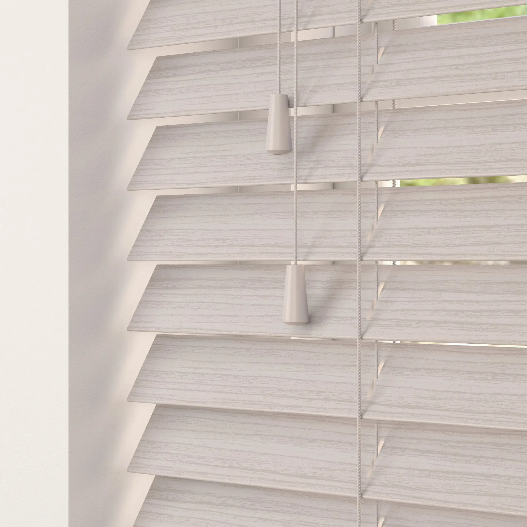 Emulating a sophisticated wood grain finish, in a 50mm slat. Produced using high quality PVC, faux wood blinds are the perfect solution for areas of high moisture, such as kitchens and bathrooms. An elegant contour valance and wood tassel completes a Faux wood venetian.